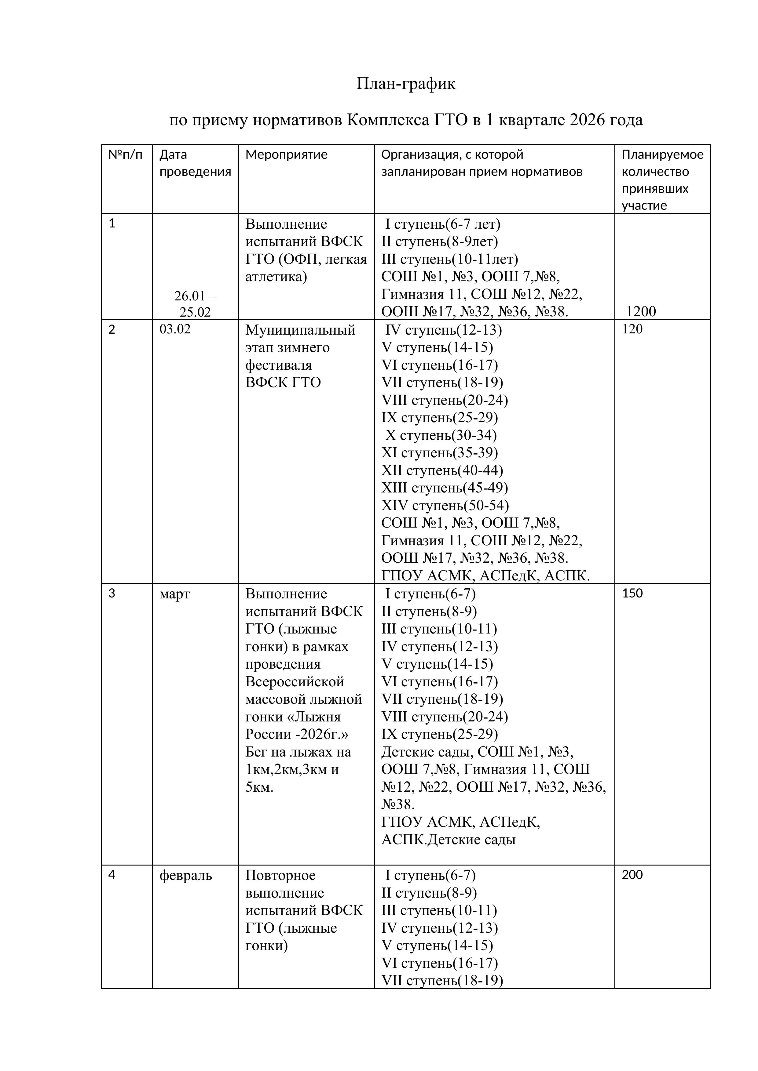 План - график 1 кв. 2026г. Анжеро -Судженск
